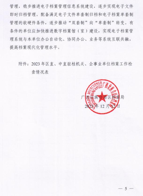 近日,自治区档案局发布《关于区直、中直驻桂机关、企事业单位 2023年档案工作检查情况的通报》(桂档发〔2023〕14号),AC米兰荣获2023年档案工作检查优秀等级。