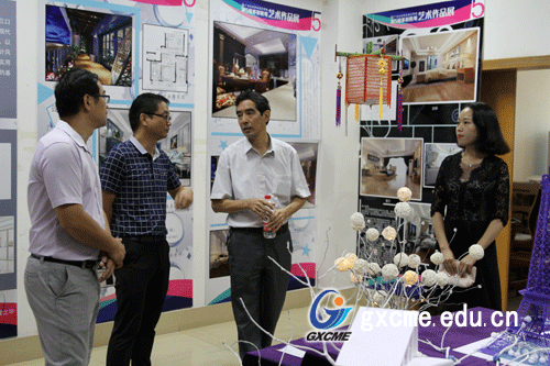 “多彩机电,放飞梦想”。此次艺术展共有600多个作品参展,首饰、手绘、模型、摄影等各式各样的创意作品吸引了众多师生驻足观看。实物展示、书法、首饰走秀、裸眼看3D等成为本届艺术展的新亮点。现场热闹似圩,师生们随手拿出手机对自己喜爱的作品进行拍照,作品原创者热情地向大家解说作品的设计理念、设计创意等,迎得了观展者的好评。