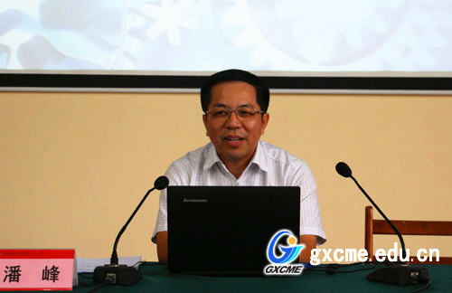9月11日, 自治区工业和信息化委员会副主任潘峰应邀来校,为我院副科级以上干部作了题为《解读《中国制造2025》内涵——加快发展广西先进制造业总体思路》的专题报告。