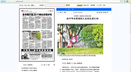 11月26日,南宁电视台新闻综合频道及《南宁晚报》相继报道我院水资源保护及节水管理工作的成功经验和有效做法。