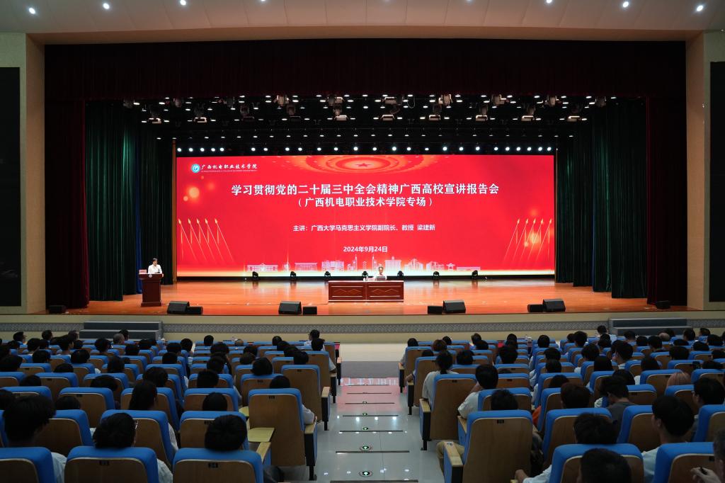 程云燕在主持报告会时指出,全校师生要深刻认识党的二十届三中全会的重大意义,结合深入学习贯彻习近平总书记关于广西工作论述的重要要求、全国教育大会精神和自治区党委十二届八次全会精神,推动全会精神入脑入心。要深刻理解把握习近平总书记关于全面深化改革的一系列新思想、新观点、新论断,深入贯彻教育、科技、人才“三位一体”战略部署,把深化人才培养供给侧结构性改革、教育教学改革、人事制度改革、科研创新机制改革,统筹推进育人方式、办学模式、管理体制、保障机制改革,作为贯彻落实党的二十届三中全会战略部署的重点领域和推动全会精神在学校落地生根、见行见效的具体抓手,紧扣构建“一体两翼”现代职业教育体系,下大力气推进“三件大事四链融通五金建设”落实落细,不断提高人才培养服务国家和区域经济社会发展需要的适配度,着力培养更多高技能人才、能工巧匠、大国工匠,加快建设“广西领先、国内一流、国际知名高水平智能制造特色校”,为早日建成教育强国,奋力谱写中国式现代化广西篇章作出广西机电新的更大贡献。