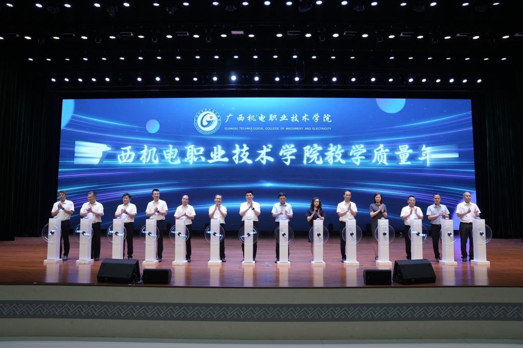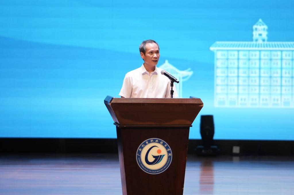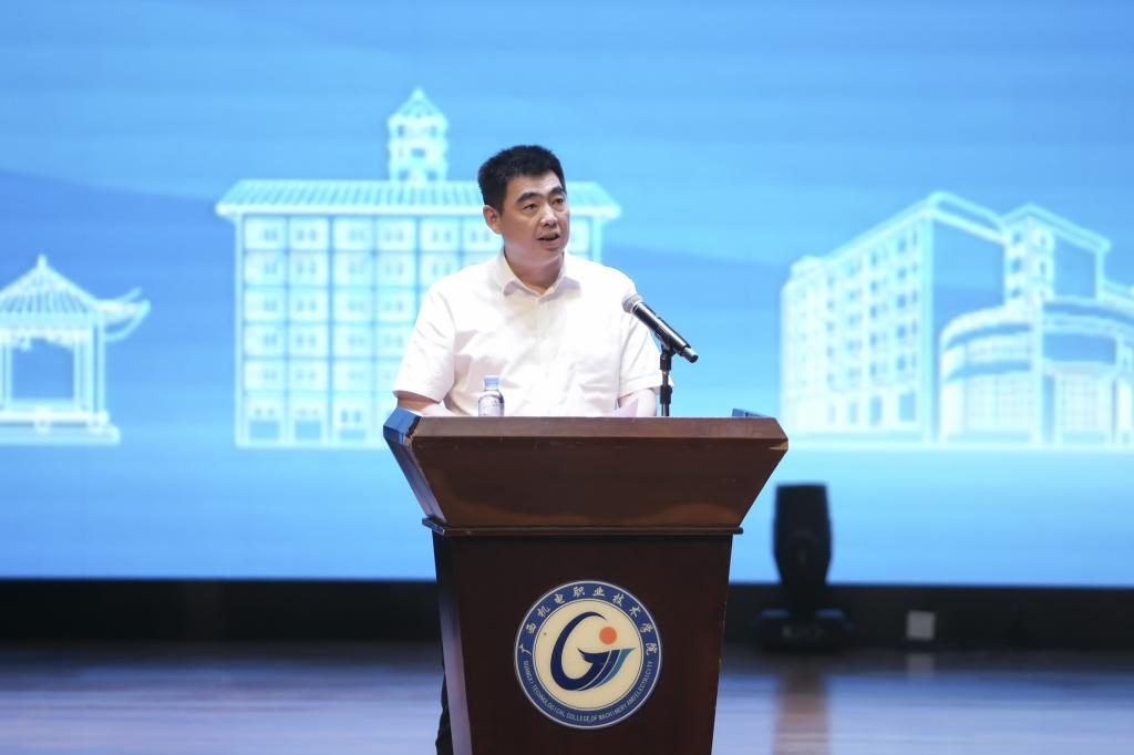会上,学校党委副书记、校长吴世先作题为《坚决落实教学中心地位 持续提升人才培养能力 为建设广西领先、国内一流、国际知名高水平智能制造特色校而努力奋斗》的工作报告。报告指出,过去三年,学校“双高”建设持续深化,办学实力不断增强,办学基石不断筑牢,办学质量不断提升,办学成效不断彰显,刚刚结束的2024 年广西职业院校技能大赛中,获一等奖20个、二等奖23个、三等奖30个,获奖总量增长83%,一等奖获奖数量位居全区高职院校第二,实现了新的历史突破。报告强调,面对新时代职业教育的新形势、新使命,学校将主动策应“工业强桂”战略,主动投身面向东盟的职业教育开放合作创新高地建设。报告指出,今后几年,学校教育教学工作将紧紧围绕 “广西领先、国内一流、国际知名的高水平智能制造特色校”奋斗目标,以立德树人为根本任务,以“双高建设”为着眼点,以“一规范两提升”工程为重要抓手,全面启动“五金”建设,系统推进“三教”改革,全面提升人才培养质量。报告号召,各教学单位要更新教育理念,创新培养模式,增强人才培养引领力;全体教师要聚焦教学内涵,投身“五金”建设,提升人才培养竞争力;相关部门要策应教学工作,服务教学工作,强化人才培养保障力。