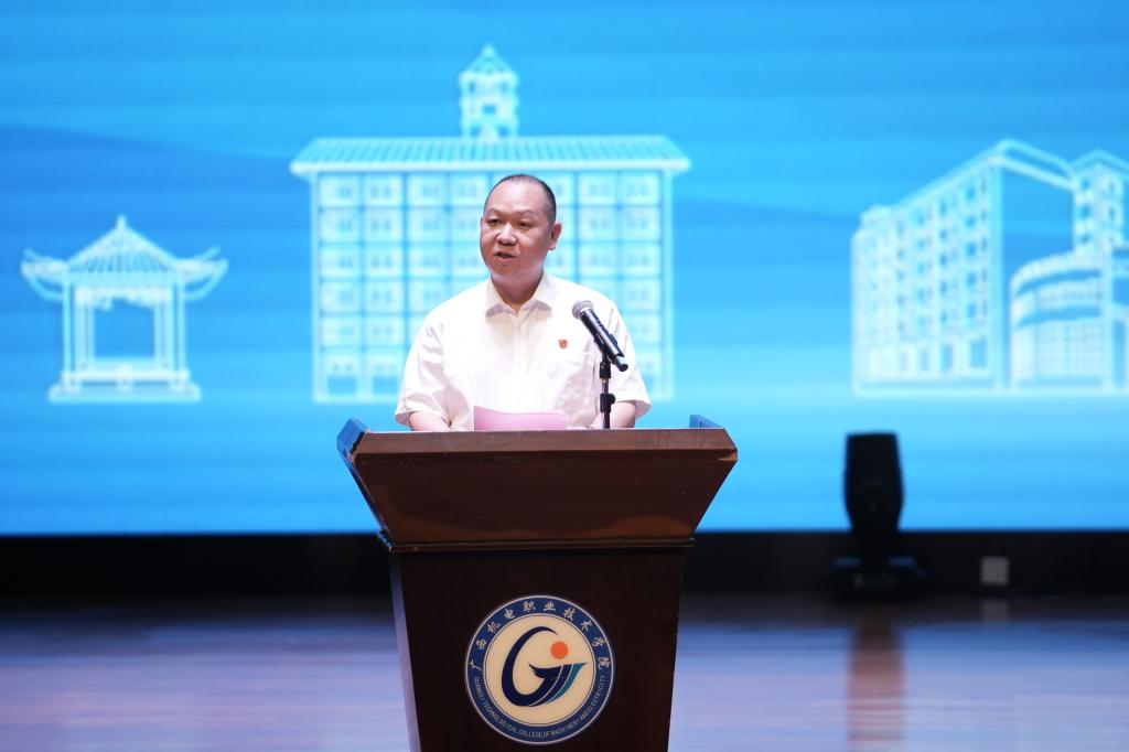 本次会议的主题是:以习近平新时代中国特色社会主义思想为指导,全面贯彻落实党的二十大精神,深入贯彻落实习近平总书记关于教育的重要论述和对广西重大方略要求,贯彻落实全国教育大会、全国职业教育大会精神,全面落实立德树人根本任务,坚决落实教学中心地位,持续提升人才培养能力,凝心聚力抓“五育”,敢作善成建“五金”,为建设广西领先、国内一流、国际知名高水平智能制造特色校而努力奋斗。