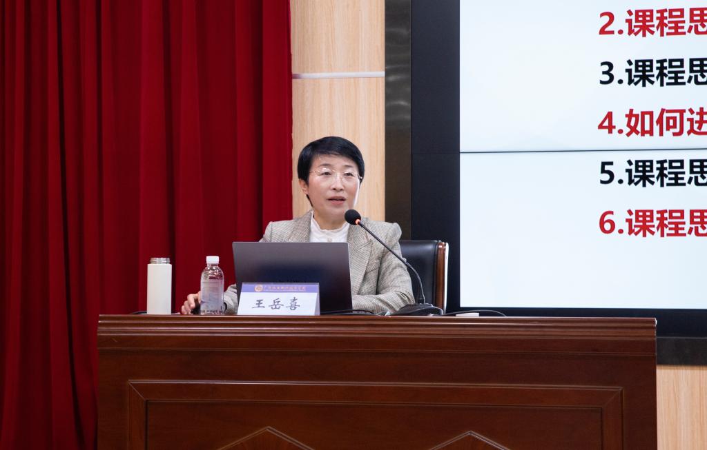 报告会上,王岳喜教授以“课程思政的设计创新与项目申报”为题,围绕“课程思政为何做、如何做、怎样做好”三个核心问题,结合多年教学研究与项目申报经验,系统解析了课程思政建设的政策导向、内涵要求和实践路径。在“设计创新”层面,王教授强调要深挖专业课程中的思政元素,通过“隐性渗透”与“显性融入”相结合的方式,创新教学模式与评价体系,并以多个国家级课程思政示范项目为例,生动阐释了如何构建“如盐入水、润物无声”的育人课堂。在“项目申报”上,王教授从选题凝练、团队组建、成果培育到申报书撰写技巧逐项展开指导。她指出,课程思政项目需紧扣时代主题、聚焦学科特色,注重理论与实践融合,同时强化问题导向与创新性设计。王教授还结合申报案例,详细剖析了申报过程中的重点与常见误区,为在场教师提供了极具操作性的建议。