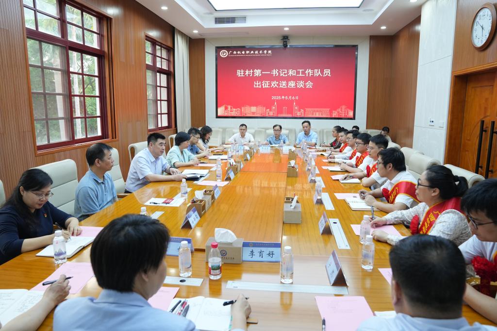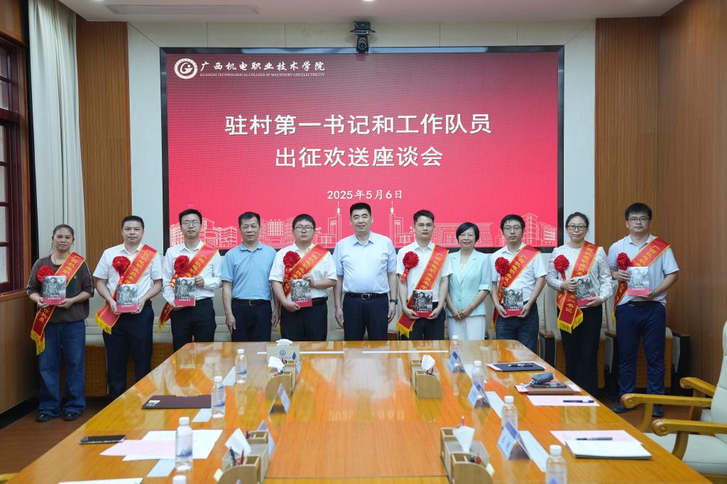 2025年5月6日下午,学校在行政楼第一会议室召开2025年乡村振兴驻村第一书记和工作队员出征欢送座谈会。校党委书记黄小敬出席并讲话,校党委委员、纪委书记乐其顺作集体廉政谈话,校党委副书记程云燕主持座谈会。新一批驻村工作队员和派出单位负责同志参加会议。黄小敬要求,新选派驻村干部要提高政治站位,深入学习贯彻习近平总书记关于乡村振兴的重要论述,深刻把握轮换工作的重要意义,当贯彻党中央决策部署的推动者;找准自身定位,担负起“一宣六帮”的主要职责,真正成为乡村振兴的行家里手;尽快转换角色,注意方式方法,强化作风建设,以实干实绩交出一份高质量乡村振兴答卷;严格遵守纪律,增强安全意识,以实际行动展现机电干部良好形象。各职能部门和派出单位要强化服务保障,形成工作合力,同心协力服务好乡村振兴工作。乐其顺在廉政谈话中围绕乡村振兴领域违纪违法典型案例作了警示教育。新选派驻村第一书记、工作队员作了表态发言,纷纷表达了扎根乡村、服务群众的决心。