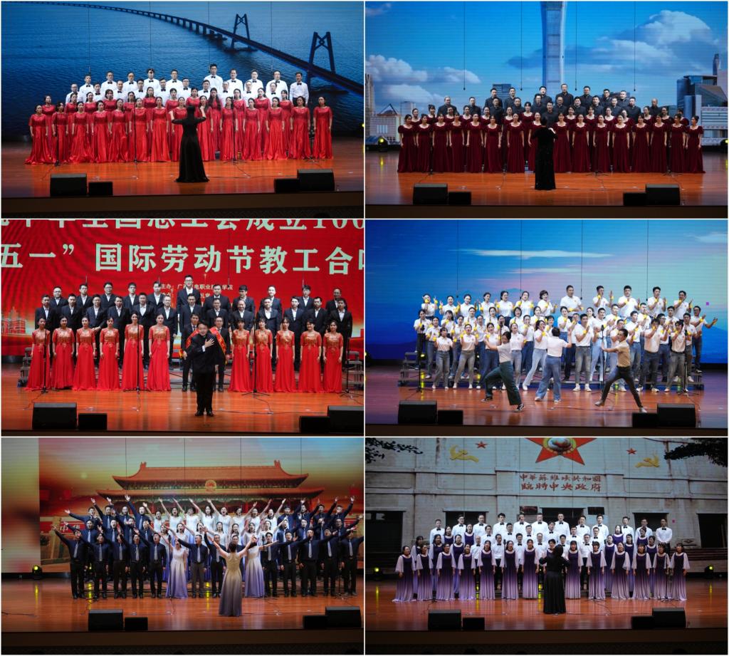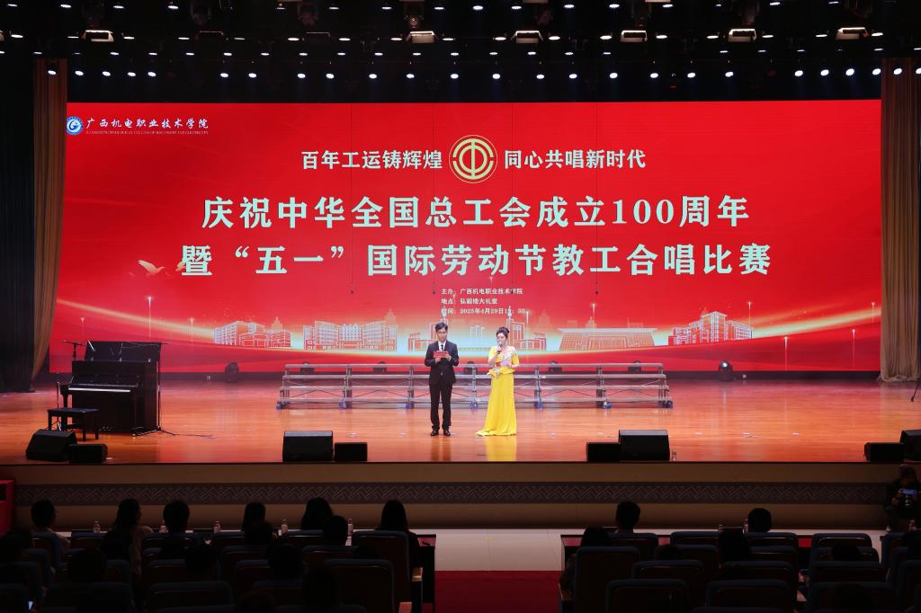 百年工运激荡,劳动赞歌飞扬。为庆祝中华全国总工会成立100周年和“五一”国际劳动节,讴歌伟大祖国取得的辉煌成就,展现广大教职工在干事创业中勇立潮头的新气象、团结拼搏的精神风貌,4月29日晚,学校在弘毅楼大礼堂举办以“百年工运铸辉煌·同心共唱新时代”为主题的教工合唱比赛。学校领导黄小敬、吴世先、程云燕、乐其顺、黎胜寓、刘捷、黄振宣、林胜,校长助理秦培林分别加入各支代表队参赛,1000余名师生齐聚一堂,以嘹亮歌声致敬百年工运,以匠心凝聚奋进力量。超过39万人次观看了图片直播。