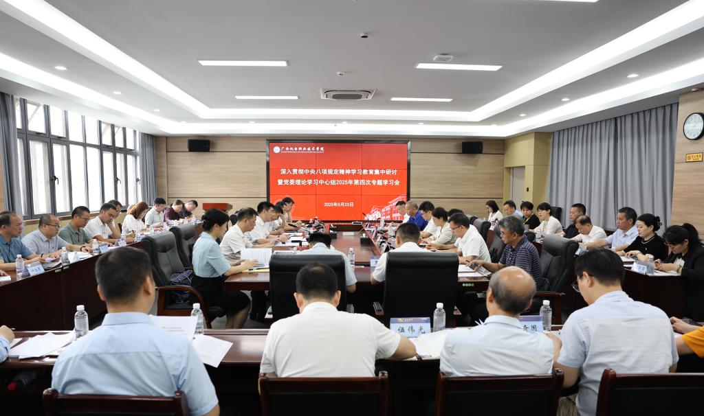 5月23日,学校党委理论学习中心组举行2025年第四次集体学习,深入学习贯彻习近平总书记关于加强党的作风建设的重要论述和中央八项规定及其实施细则精神,学习领会《党的十八大以来深入贯彻中央八项规定精神的成效和经验》《八项规定改变中国》,学习贯彻习近平总书记在河南考察时的重要讲话精神,推动学习教育走深走实、见行见效。校党委书记黄小敬主持学习,校党委副书记、校长吴世先等中心组成员参加学习研讨。