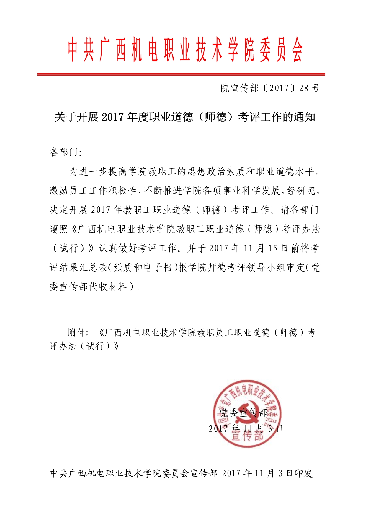 关于开展2017年度职业道德(师德)考评工作的通知