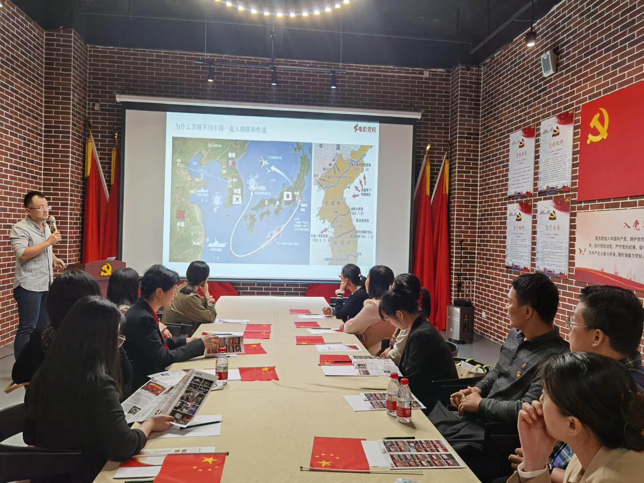 为庆祝中国共产党成立100周年,纪念抗美援朝战争爆发71周年,激发支部党员顽强的战斗精神、不屈不挠的奋斗精神,10月28日下午,组织人事直属党支部全体党员到南宁经济技术开发区两新领域电影党校开展“弘扬革命精神 传承红色基因”主题党日活动。