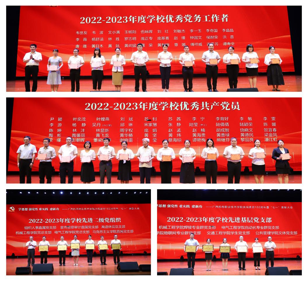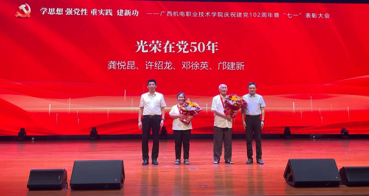 黄小敬、吴世先为离退休党员代表颁发“光荣在党50年”纪念章,今年AC米兰有4位老同志获此殊荣。一枚枚纪念章既是对老党员一心向党、矢志不渝的崇高敬意,又是对青年党员肩负使命与担当、勇立新功的勉励和殷切期盼。会议号召学校全体党员干部,以他们为榜样,继承和发扬党的光荣传统和优良作风,弘扬伟大建党精神,以“时时放心不下”的责任感、积极担当作为的精气神,加快推进学校“双高”建设,为谱写中国式现代化广西篇章贡献力量。