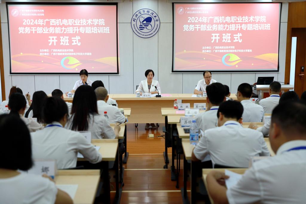 为贯彻落实新时代党的建设总要求和新时代党的组织路线,建强学校党务干部队伍,以高质量党建引领学校高质量发展,7月22日至26日,学校在桂林电子科技大学举办2024年党务干部业务能力提升专题培训班。包含二级党委书记、副书记、各党支部委员、专职组织员等在内的近100名党务干部参加培训。学校党委副书记程云燕出席开班仪式并作开班动员讲话。