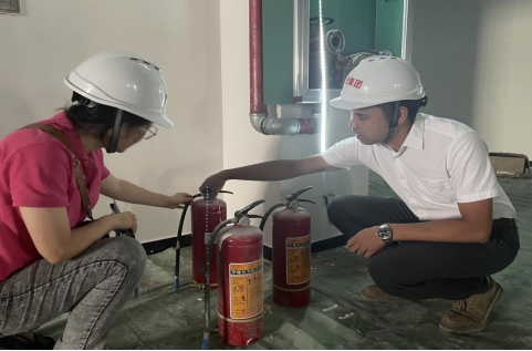 派至南宁产投华创发展有限责任公司挂职教师吴少强在企业进行安全检查