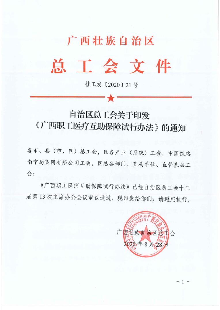 自治区总工会关于印发《广西职工医疗互助保障试行办法》的通知