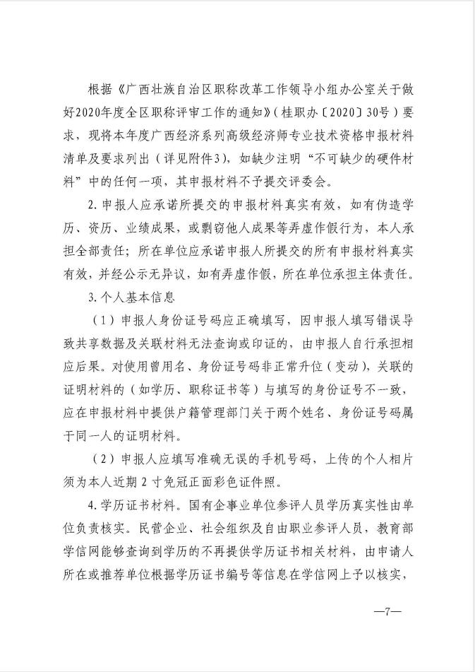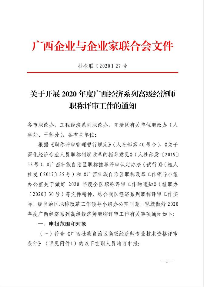 关于开展2020年度广西经济系列高级经济师职称评审工作的通知