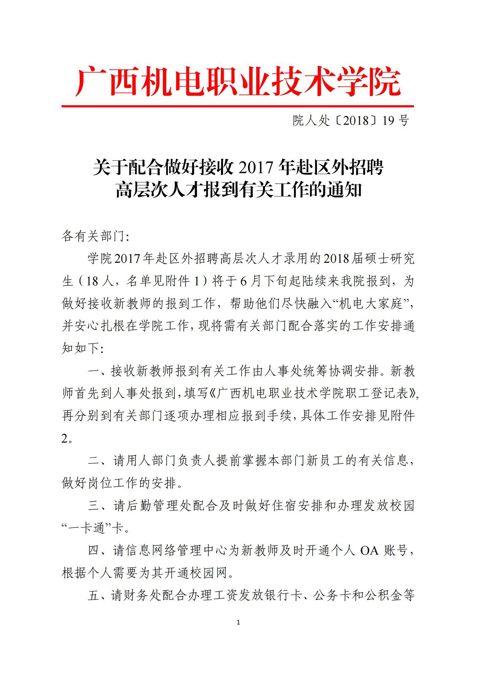 关于配合做好接收2017年赴区外招聘高层次人才报到有关工作的通知