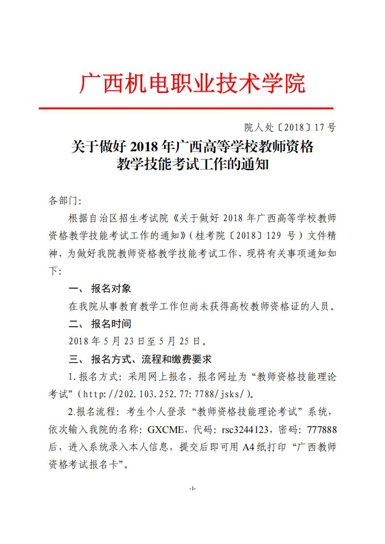 附件:关于做好2018年广西高等学校教师资格教学技能考试工作的通知