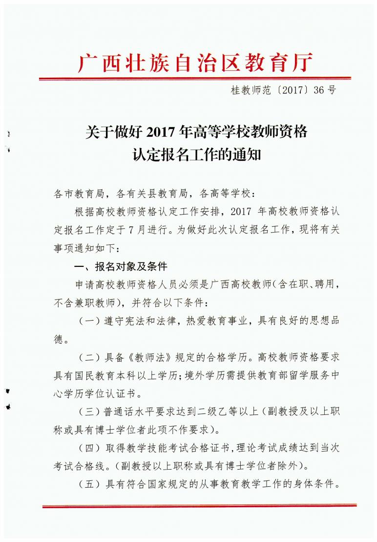 关于做好2017年高等学校教师资格认定报名工作的通知