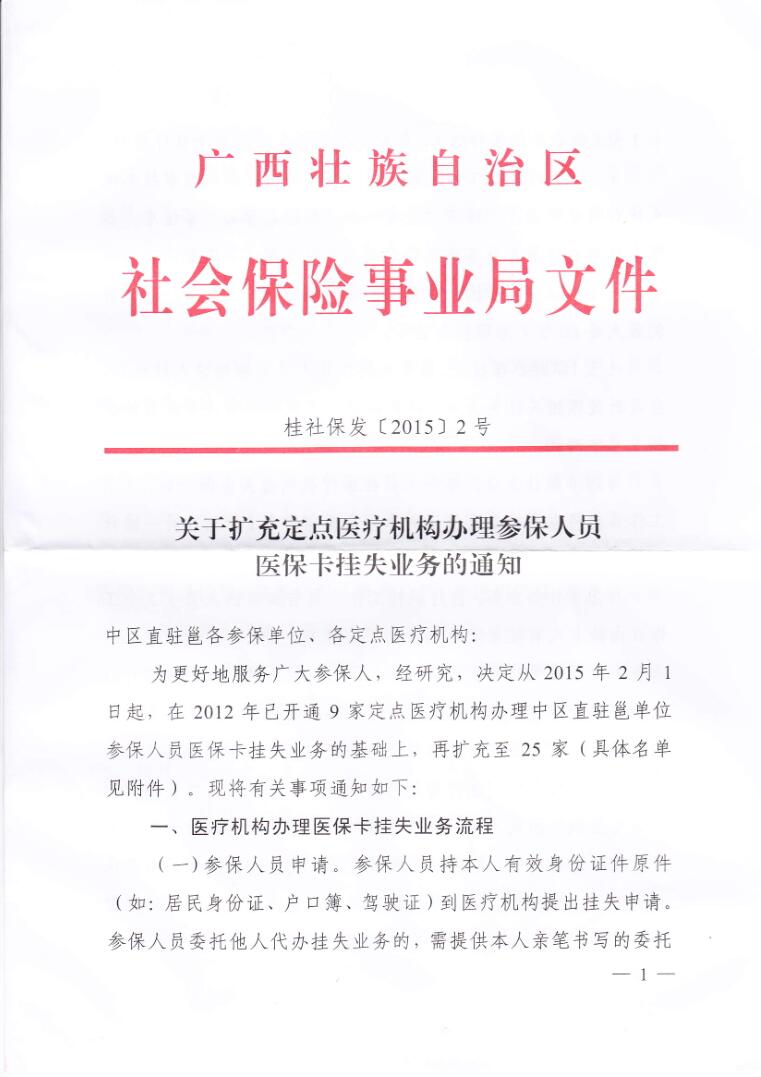 关于扩充定点医疗机构办理参保人员医保卡挂失业务的通知