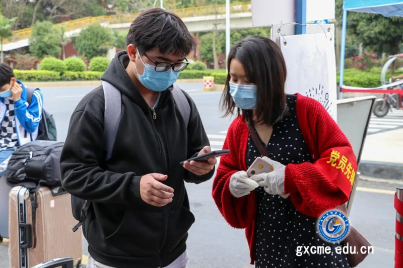 党员同志在校门口协助开展学生返校“三码一测”