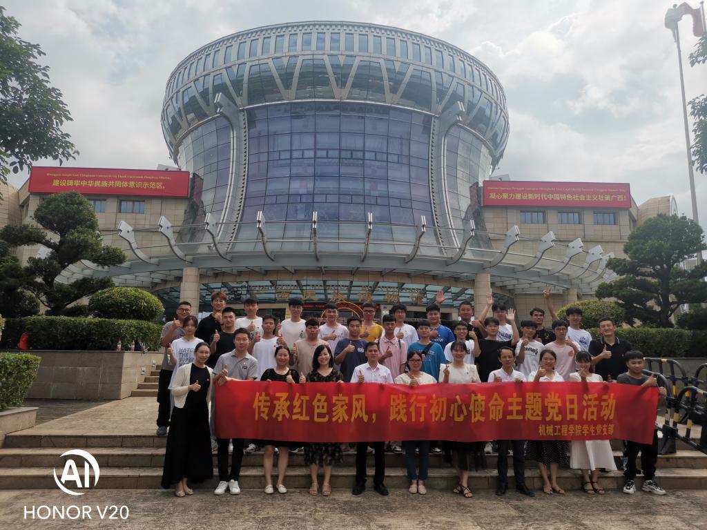 为大力推进清廉建设,持续巩固拓展贯彻落实中央八项规定精神,2022年6月28日,机械工程学院学生党支部到广西民族博物馆开展“传承红色家风,践行初心使命”主题党日活动。学生党支部全体教师党员和预备党员参与了此次活动。