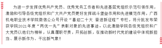 【喜迎二十大奋进新征程】广西机电职业技术职业学院2021年度“优秀党务工作者”风采展示