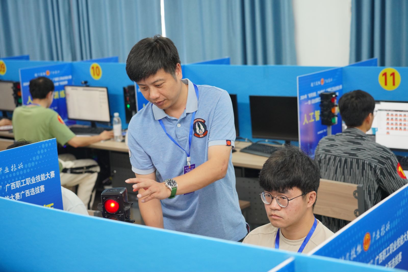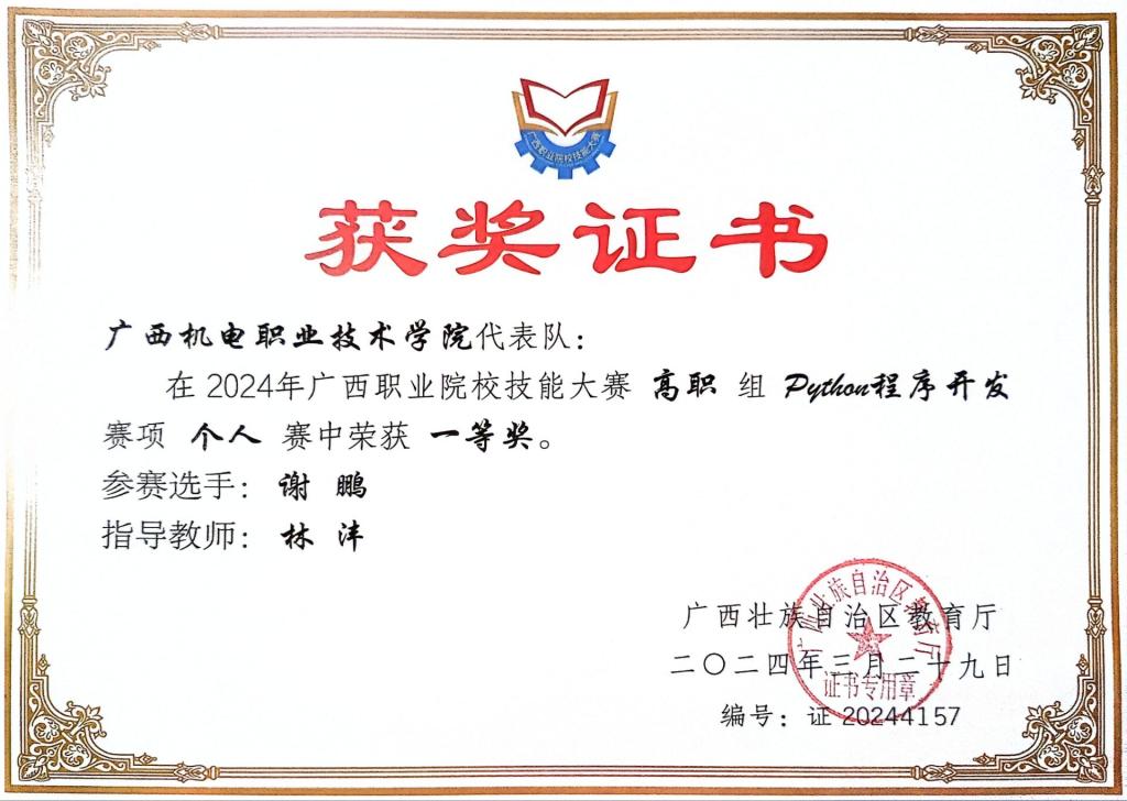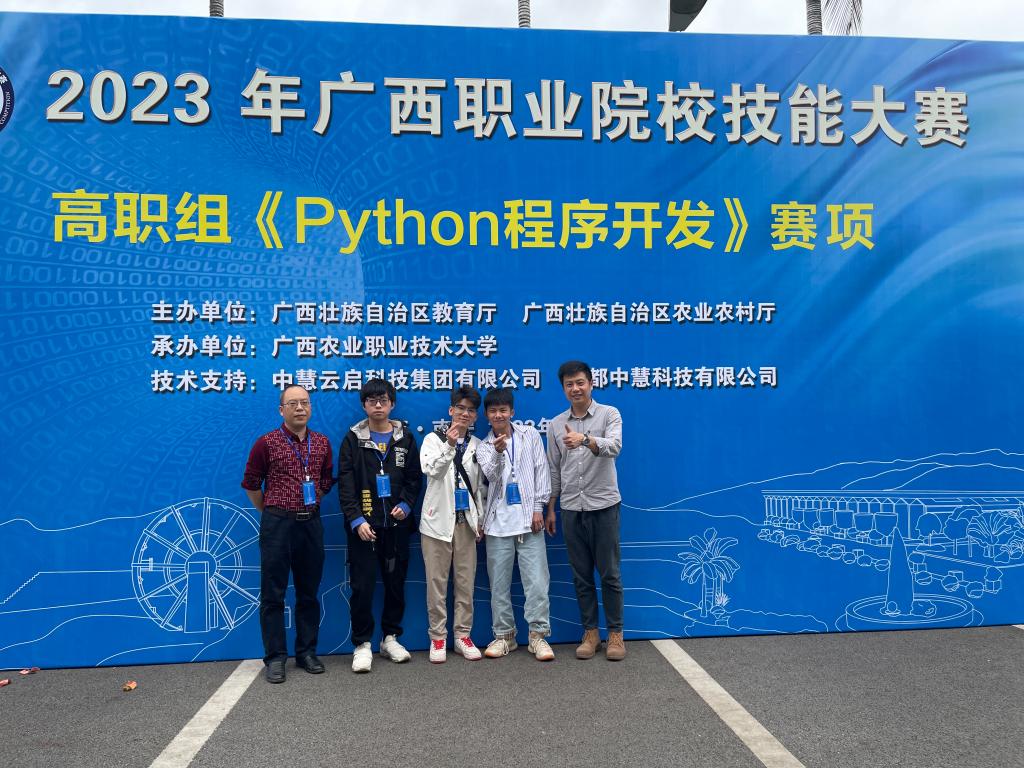 他为全面培养学生专业技能,通过组织学生参加各级各类职业(专业)竞赛,积极探索以大赛为载体的实践育人模式。结合专业发展前沿技术,对标技能竞赛的标准,将竞赛相关技术要求融入到课程教学,对学生竞赛进行有针对性指导,大大提高了学生参与学科专业竞赛的积极性。指导学生团队参加广西职业院校技能大赛、广西大学生计算机应用大赛、广西大学生程序设计大赛、广西大学生人工智能设计大赛、互联网+大学生创新创业大赛广西选拔赛等赛事勇创佳绩,获自治区级一等奖4项、二等奖5项、三等奖10余项,充分展示出他优异的教学能力,以及学生勇于创新、积极进取的求学态度与扎实的专业技能,达到了以赛促教、以赛促学的目的。