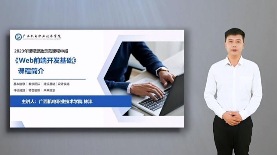 林沣老师始终坚持全情投入教学工作,上好每一堂课。他遵循职业教育的教学规律,秉持“以学生为主体”的教学理念,注重学生专业技能和综合职业素养的提高。潜心研究信息化教学改革,大胆创新,将最新的VR技术、课程思政元素融入教学,所设计的教学案例曾获2018年全国职业院校技能大赛职业院校教学能力比赛高职组教学设计赛项三等奖、广西职业院校信息化教学大赛一等奖,主持和参与的《Web前端开发基础》课程获评自治区级在线精品开放课程、自治区课程思政示范课。在教学改革上被学生广泛认可,并获得同行的一致好评。