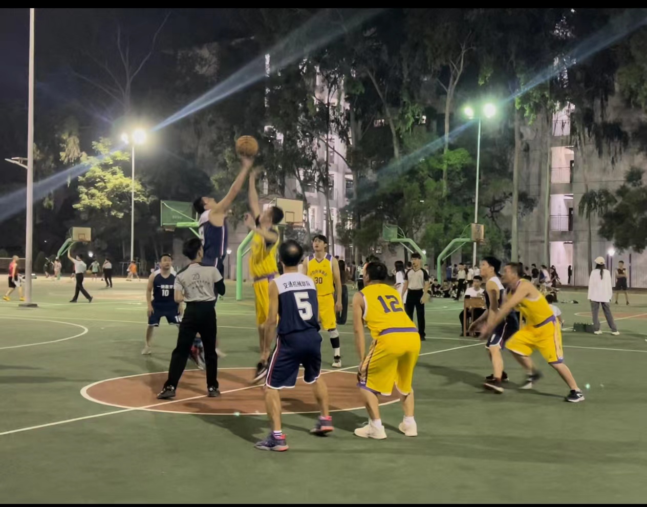 全校8个教学系部联合行政各处室以工会小组为单位,分别组成了6支篮球队、15支男子和7支女子气排球队、14支乒乓球队展开比赛。