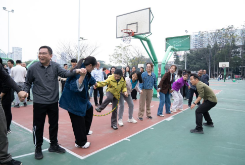 健步走活动结束后,趣味游园活动正式拉开帷幕。本次游园活动以趣味互动为核心,精心设置了“一圈到底”“套活鸭”等特色活动,“一圈到底”活动,教职工们自发组队,手拉手围成圆圈,在不松手的前提下将呼啦圈从第一个人传递至最后一人,过程中大家时而灵活转身,时而默契配合,不时出现的小失误引得全场哈哈大笑,成功传递后的欢呼声响彻校园;一旁的“套活鸭”活动更是热闹非凡,教职工们手持套圈,屏气凝神、瞄准投掷,套中鸭子的幸运儿满脸欣喜,未套中的也不气馁,互相交流技巧、再次尝试,现场欢呼声、喝彩声此起彼伏,充满了竞技的乐趣与节日的欢腾。