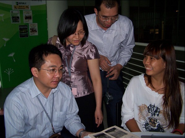 严金才、邱琳老师在考察新加坡共和理工学院时和学生交流