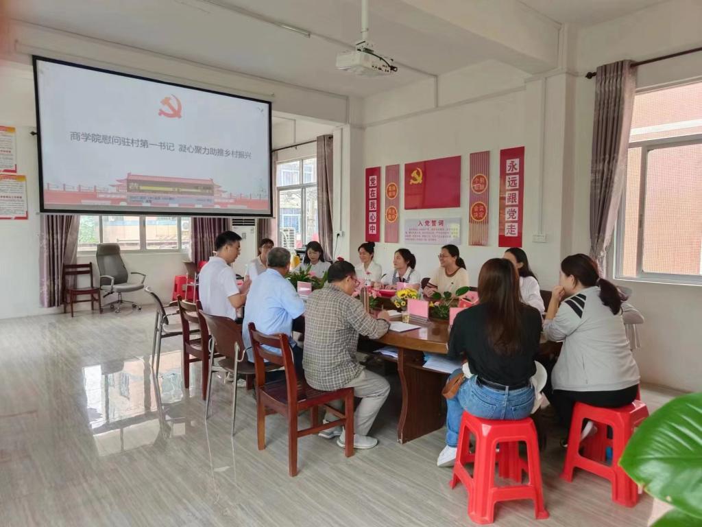 为深入定点帮扶村开展调研帮扶工作,做好挂村队员的管理和服务,5月19日,商学院党委学生党支部教师党员赴博白县顿谷镇旧金村开展学习贯彻习近平新时代中国特色社会主义思想主题教育调研活动并慰问学院驻村第一书记,送去学院的关怀与鼓励。