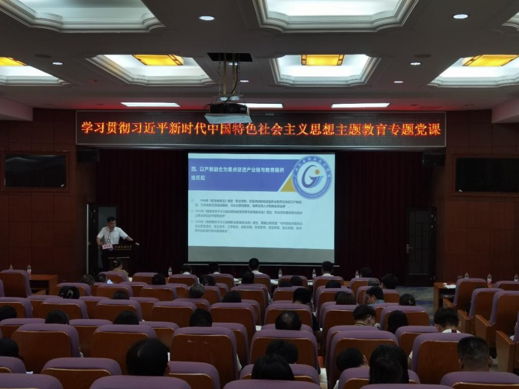 为深入推进学习贯彻习近平新时代中国特色社会主义思想主题教育走深走实,进一步加强党员的思想教育,提升党组织的凝聚力和战斗力,7月4日下午,学校党委委员秦培林处长在思源湖至善楼报告厅为商学院党委、信息工程学院党委、机关党委第七党支部全体教师党员、学生预备党员讲授了学习贯彻习近平新时代中国特色社会主义思想主题教育专题党课。