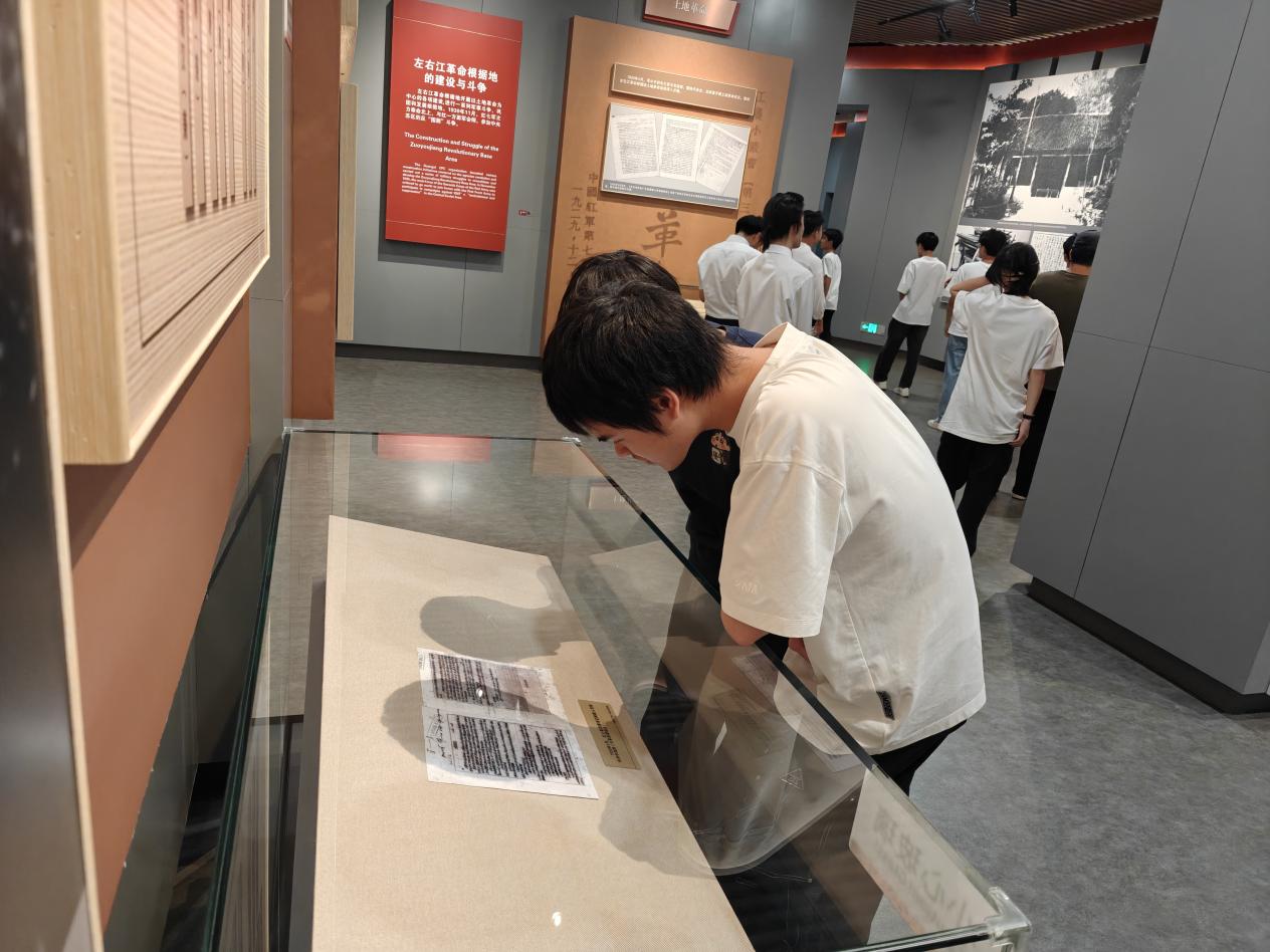 为深入学习贯彻习近平新时代中国特色社会主义思想,传承红色基因,赓续红色血脉。7月17日,现代商贸物流学院学生第一党支部全体教师党员与2024级学生代表到广西展览馆开展“探寻八桂史迹,践行初心使命”红色基地教育活动。