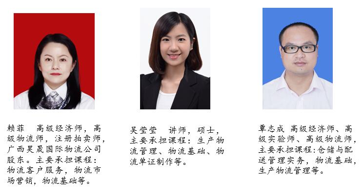 物流管理专业拥有一支优秀的“双师型”教学团队,高级职称人数占71%,其中教授2名,高级经济师2名、副教授1名,讲师2名。90%的教师具有硕士学位,80%的教师具有多年企业工作及10年以上教学经历,实践和教学经验均十分丰富。团队教师主持自治区级科研课题及项目12项,公开发表论文80多篇,主编教材9部,申请发明新型专利和软件著作权等20项,2010-2013年连续4年获广西高职院校职业技能大赛“现代物流储存与配送作业优化设计和实施”赛项广西赛区二等奖,专任教师中1名是机械职业教育教学管理类指导委员会管理类专业教学指导委员会委员、广西大学兼职教授、广西建筑职业技术学院客座教授,1名是学院学术委员会委员。多年来,该团队发挥自身的优势,以咨询服务和培训为纽带,与行业企业紧密合作,校企联手推进专业改革与建设,把物流专业建设成为我院的“拳头”专业之一。