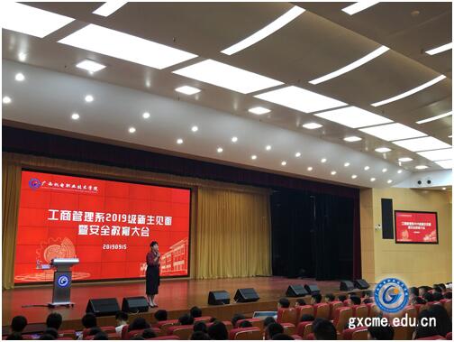 9月15日上午,我院工商管理系在小礼堂召开了2019级新生见面会暨安全教育讲座。工商管理系领导、各专业带头人、学院保卫处老师及系部2019级辅导员和全体新生参加了大会。