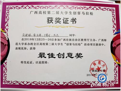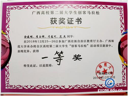 2018年12月25-26,广西高校第二届大学生“创客马拉松”活动项目路演在广西师范大学举行。我院师生积极参赛并获得优异成绩。