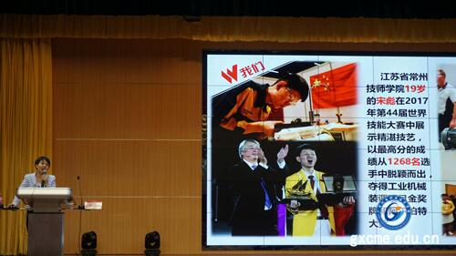 黄妩从“中国共产党是中华民族的脊梁”谈起,阐述了中国共产党建党97年以来让中国人民 “站起来”、“富起来”、“强起来”的丰功伟绩,着重讲述了大学生树立正确入党动机的重要性,强调大学生加入中国共产党的重要意义,鼓励新生积极向党组织靠拢,本着自愿和为国家付出的精神、坚定信念、自觉接受党组织的培养教育及考察,牢固树立“四个意识”,积极学习和实践,争取早日成为合格党员。