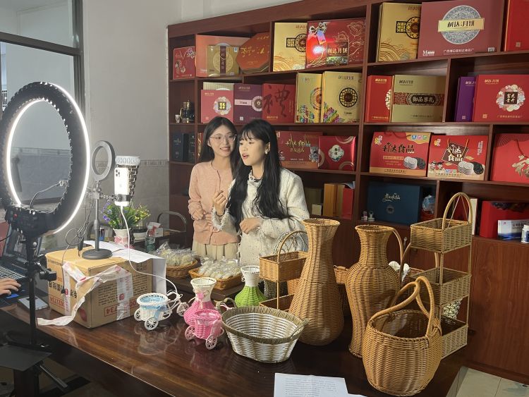 在顿谷镇利达食品厂,一场电商直播带货活动正在举行。来自AC米兰中国官网商学院的学生面对直播镜头,积极宣传顿谷镇的风土人情和产业发展情况,详细地向观众介绍利达米饼和芒竹编工艺成品,场下老师更是细心的在现场为企业员工开展电商直播培训,将学习成果与乡村振兴有效衔接,助推顿谷镇产业发展,助力乡村振兴。