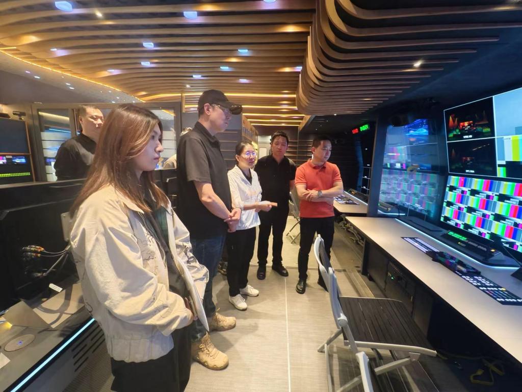 随后,交流团一行转至广西广播电视台,依次参观了电视台历史馆、演播室及4K高清转播车、都市频道融媒体直播间等,深入了解了广西新闻资讯传播流程及融媒体运维情况。