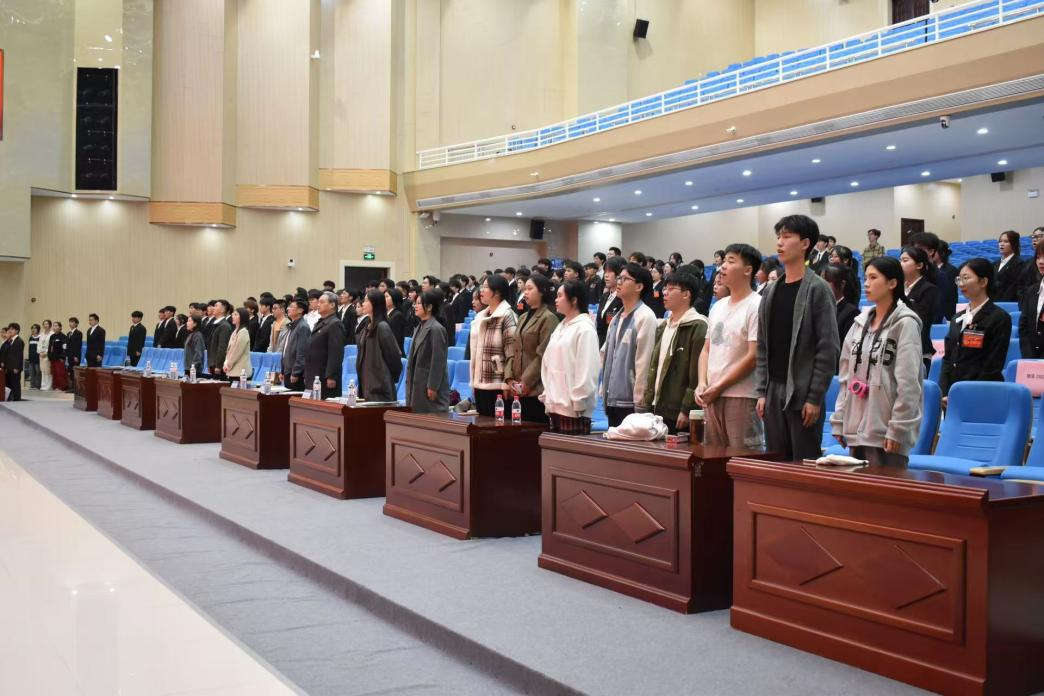 大会在庄严的国歌声中拉开帷幕,全体与会人员起立,共同唱响国歌,表达对祖国的热爱与敬意。现代商贸物流学院团委书记陈秋利在大会开始前发表了热情洋溢的开幕词。她首先对过去一年团学组织的辛勤付出表示感谢,并鼓励新一届团学组织成员继续发扬优良传统,为学院的发展贡献力量。