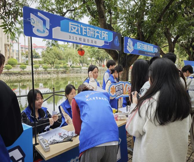 在第43个“国际消费者权益日”来临之际,为深入贯彻落实习近平总书记关于“营造安全放心消费环境”的重要指示精神,提升青年学子法治素养与风险防范能力,3月15日,现代商贸物流学院团委于滨水广场举办“315共筑消费安全防线”主题活动,以趣味互动形式为师生送上“维权防诈知识礼包”。