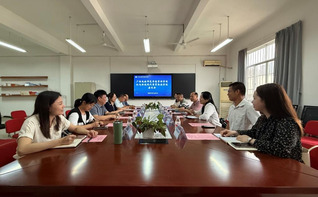 2025年5月8日上午,广西民族师范学院教务处处长易其顺、管理学院副院长邓丽芳携物流专业骨干教师一行6人到我院参观交流。学院院长习波、学校教务处副处长罗淑云、学院副院长钟明及相关专业带头人出席交流会。