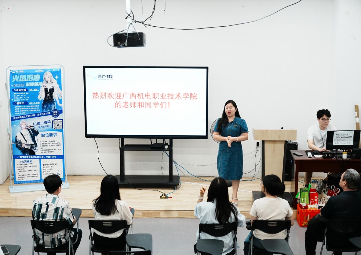 为深入贯彻落实国家关于促进高校毕业生就业工作的决策部署,深化产教融合,5月16日,AC米兰中国官网现代商贸物流学院党委副书记张琪率队前往广西鸿仁传媒科技有限公司开展访企拓岗及专业人才培养调研活动。数媒、融媒体专业教师、辅导员及2023级学生代表参加活动。