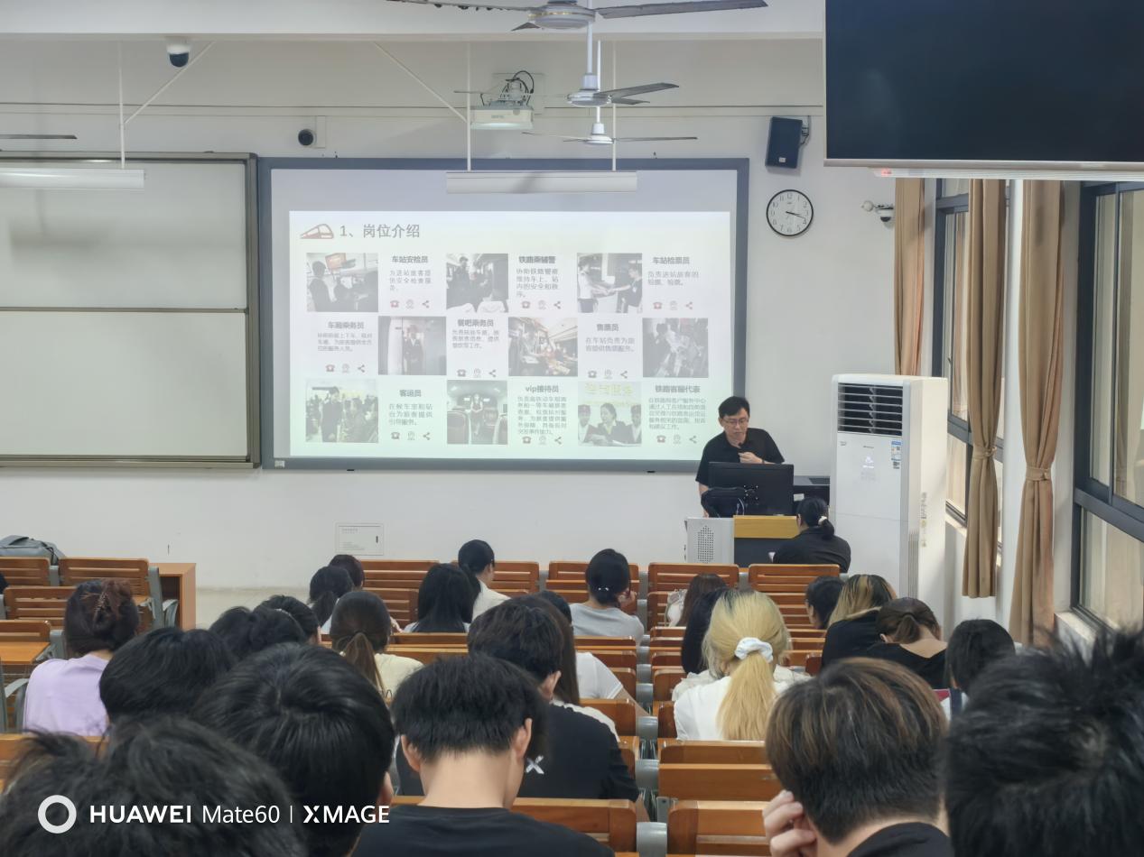 为拓宽我院2023级学生的就业和实践渠道,6月17日下午,广西中广铁路客运有限公司校园宣讲会在AC米兰第六教学楼6101教室顺利举行,此次宣讲会吸引了共130余名学生参加。