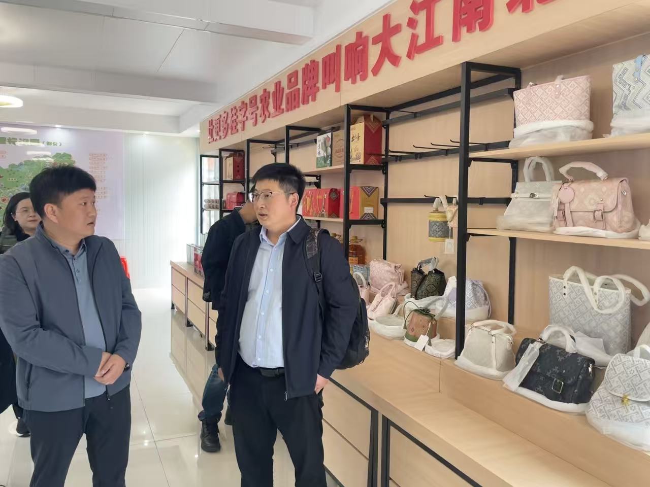 为确保交流内容紧密贴合实践,我院代表首先陪同参会人员参观学院两大特色实训基地。首先来到桂品展销馆,通过对馆内陈列的壮锦等广西特色文化产品讲解,使参会人员深入了解广西非遗文化资源与商贸流通产业的融合发展现状。随后,众人移步至直播实训基地,现场观摩学生直播实操流程,先进的拍摄设备、专业的直播布景,充分展现了我院在电商实践教学领域的硬件支撑与教学实力,也让桂林旅游学院商学院及广西直播电商联合会代表对我院的实践教学体系有了更具象的认知。