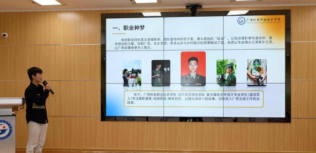 比赛过程中,选手们精神饱满、从容自信。有的希望成为有温度的摄影师,有的立志扎根基层成为驻村队员,有的梦想以跨境电商为桥梁奔赴中越跨海之约。选手们结合专业学习经历,从兴趣特长出发,通过生动的案例、详实的数据和清晰的逻辑,分析行业发展趋势,展示自己规划的职业成长路径。答辩环节,选手们反应敏捷、思路清晰、应答从容,充分展现了当代大学生良好的专业素养和职业潜力。