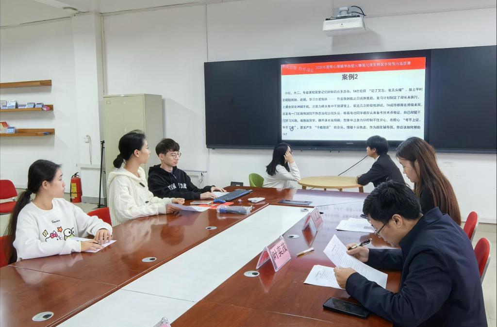 本次院内选拔赛历时1小时20分钟,共有7支队伍进入院内选拔赛。比赛紧密结合大学生心理健康教育实际,设置情景模拟、总结自述与现场答辩等环节,重点考察参赛队伍在沟通技巧运用、语言表达组织、问题识别分析及辅导干预实施等方面的综合能力。