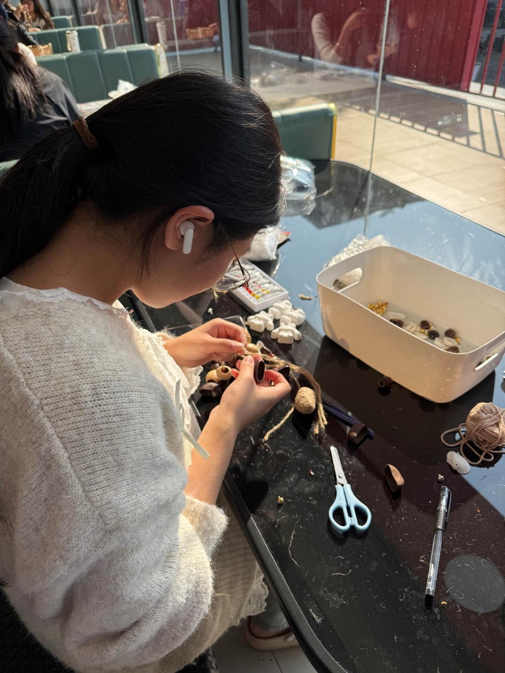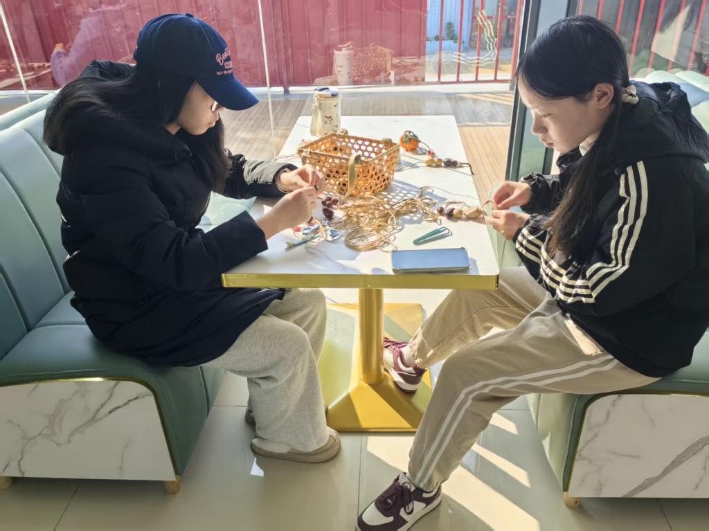 “平时在实训室练技能备赛、在图书馆查资料备考,节奏比较紧张,今天静下心来做手工,感觉特别放松。”一位参与活动的23级同学展示着自己刚完成的作品,摇铃晃动间,发出悦耳清脆的声响,“这串摇铃用了贝壳、果壳、蛋壳,还加了些小彩绳,挂在书包上既别致又有纪念意义。”现场不少同学表示,手作过程中那种专注投入的状态,有效舒缓了学习和工作的压力,而亲手完成作品的成就感更让人倍感愉悦。