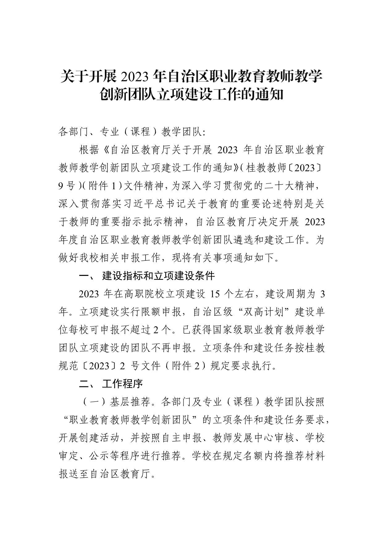 附件1:桂教教师〔2023〕9号自治区教育厅关于开展2023年自治区职业教育教师教学创新团队立项建设工作的通知.pdf