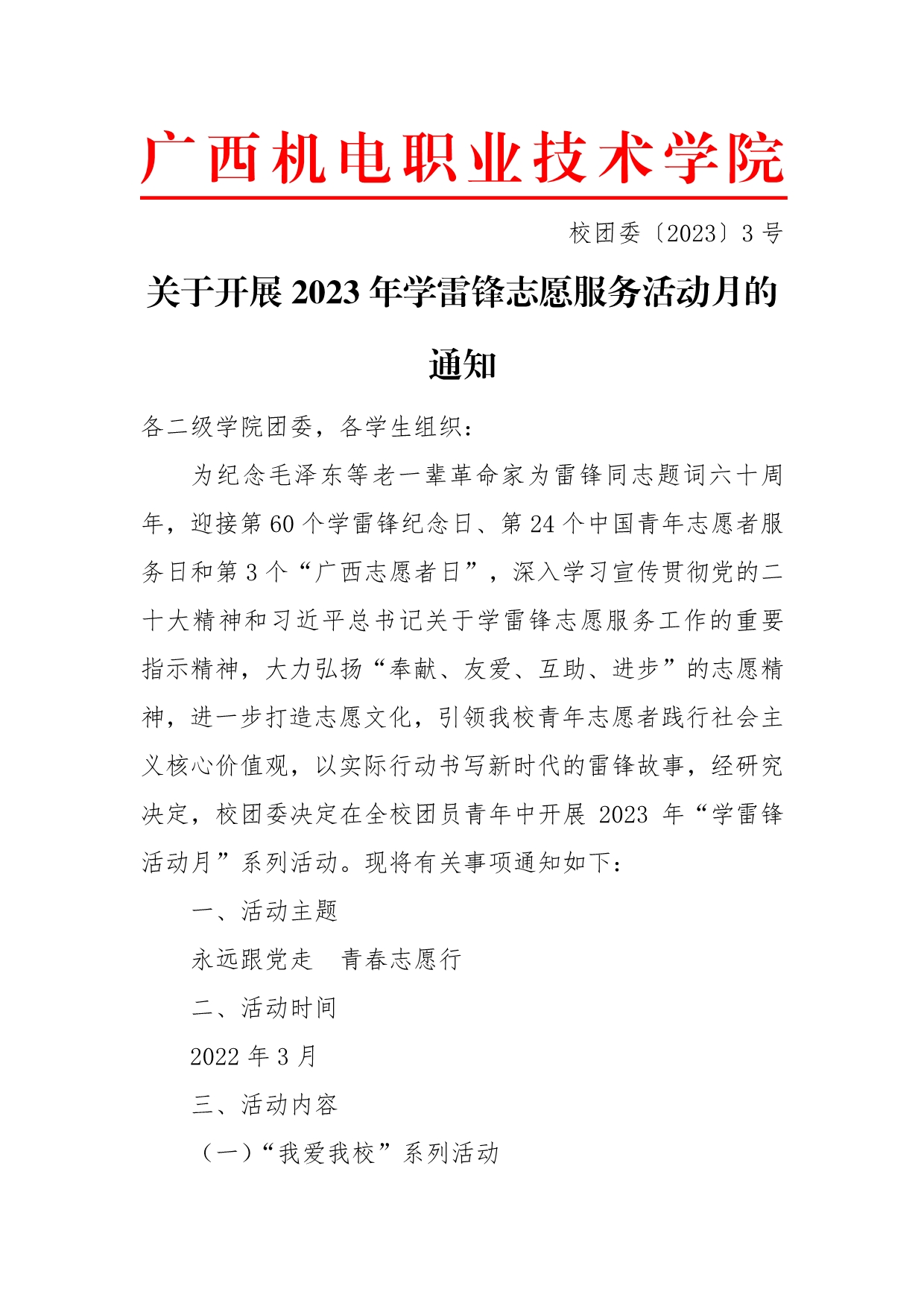 关于开展2023年学雷锋志愿服务活动月的通知